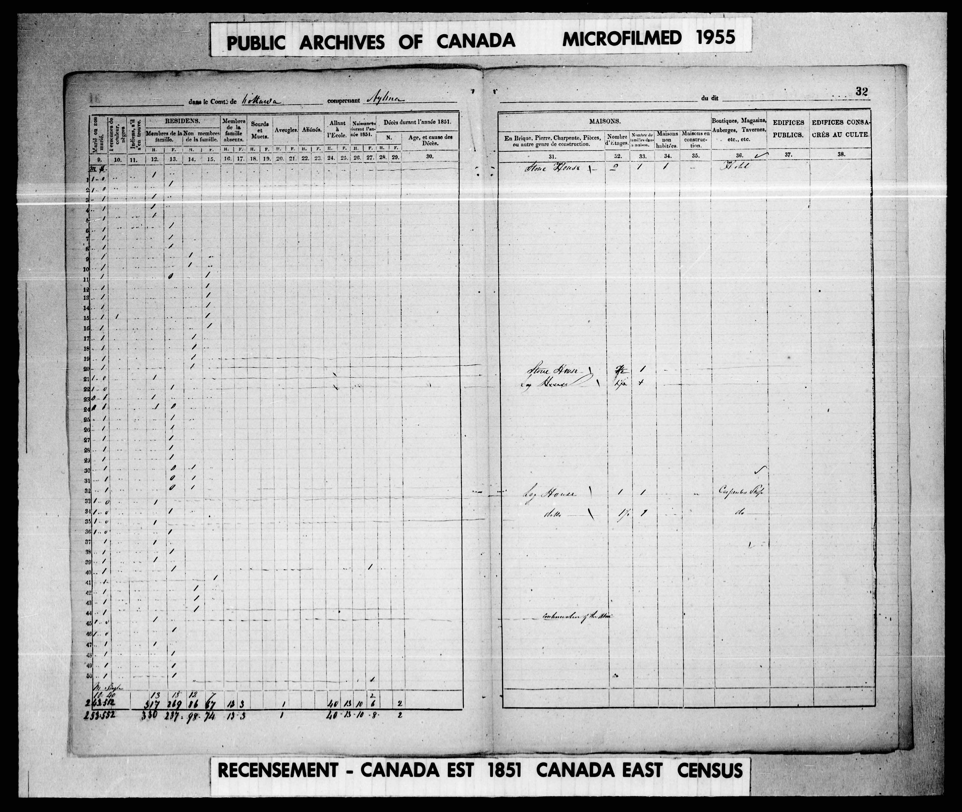 Public Archives of Canada,  Microfilm, 1955, Recensements- 1851, Number 16, sheet Recensement personnel – District de recensement, no 1, de of village Aylmer   31